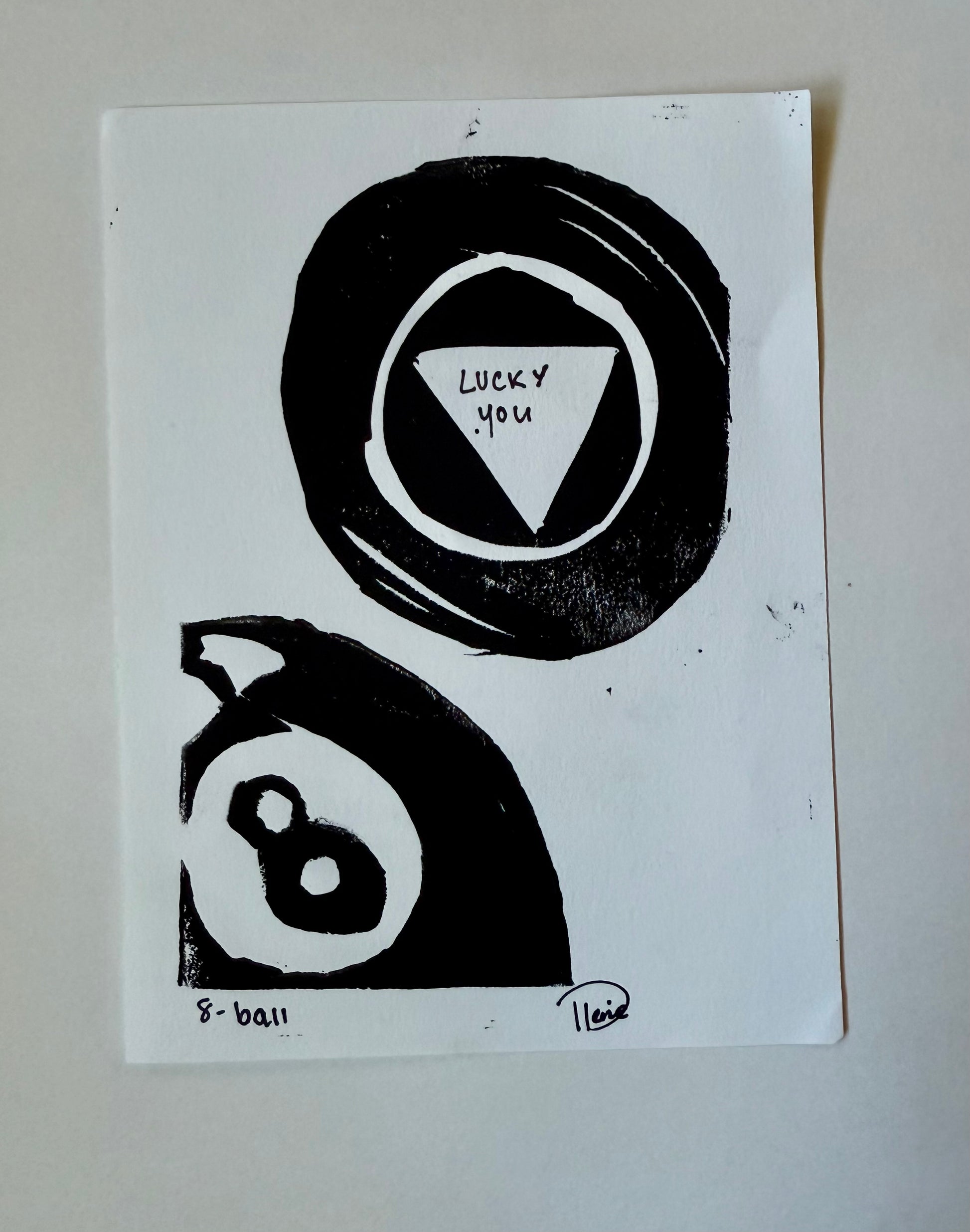 8 Ball Linoleum Print